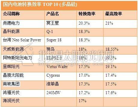 就多晶硅电池转换效率不低于18%的指标,也仅尚德电力“冥王星”能达到,其转换效率对外宣称20.3%。