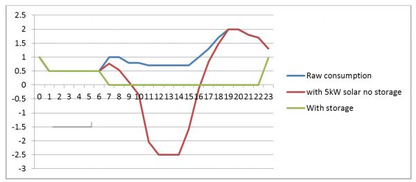 而住宅太阳能发展速度较快的区域如加州,则担忧“鸭形曲线”问题,过去电网用电高峰往往在中午,太阳能发电高峰也在中午,正好能起压平尖峰的作用,不过一旦太阳能发展超过某个比例,会使得中午太阳能发电反而把过去的中午尖峰打为低谷,到了傍晚第二用电高峰时,太阳下山,于是突然冒出一个“鸭脖子”用电高峰,对电网调控造成挑战。若安装住宅太阳能的用户普遍安装能源储存,把中午多余电力转到傍晚使用,那鸭形曲线问题自然得到解决。