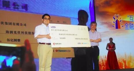 6月25日下午,在“2015年互联网+光伏金融创新模式大会”中,双方举办了第三笔预付款交付仪式。招商新能源首席执行官李原先生及海润光伏董事长杨怀进先生莅临现场,亲自交收5亿元港币支票。