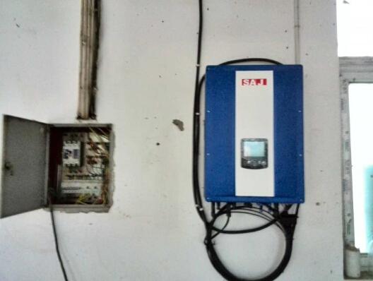 近日,三晶电气在新疆阿克苏地区的12KW分布式光伏电站顺利并网。该项目装机容量12KW,整个系统采用多晶硅235W38块,200W16块,铺设在厂房屋顶上;组件19块为一串(235W),16块一串(200W),共三个组串,使用了2路MPPT接入三晶电气逆变器Suntrio-TL12K直流端,逆变器的输出经过计量箱接入用户原有供电系统。预计年发电量25000度左右。