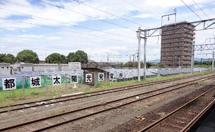 以前,该站北侧沿电车线有被称为“都城派出”的车辆维护检修基地。但10多年前停用,变成了闲置土地。乘固定价格收购制度(FIT)实施之机,JR九州调查了适合开展光伏发电的闲置土地,目光落到了都城站北侧的约2.1万m2土地上。除此再没有其他集中于一处的大面积闲置土地,这里变成了JR九州集团唯一的一座百万光伏电站。