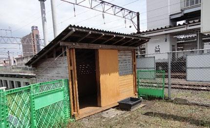 为放养山羊,设置了饮水处和小羊舍(图7)。体型较小的山羊每天也要饮水1~2升,考虑到山羊不耐热、不喜下雨及考虑到产羔而建了小。另外,还委托管理都城站周边设备的管理者利用空闲时间定期确认山羊的情况,并在没有草的冬季喂给饲料。