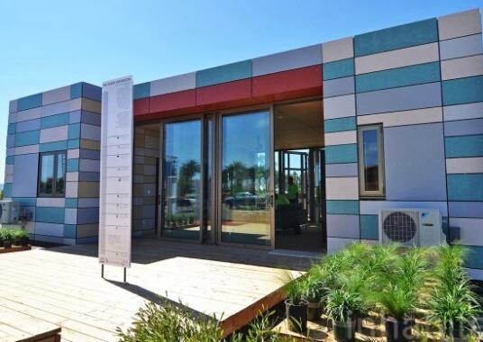 环保产品的设计常常从再利用着手,而船运集装箱日益成为家居设计者青睐的再利用材料。净零能耗的NestHome小屋由三个经改装的集装箱构成,集装箱外部由再生木材覆盖。此外,它还具备其他环保元素,如灰水回用、高效照明、水培花园。24块太阳能电池板能够为整个小屋提供足够的能量。