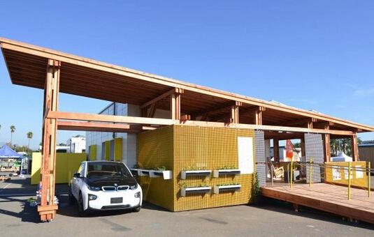斯蒂文斯理工学院的SUREHOUSE在加州举办的太阳能十项全能竞赛中脱颖而出。这一太阳能小屋是专为抵御飓风和强雨而设计的。它是一幢完美的海滨小别墅,布局宽敞、凉风习习,露天平台十分宜人。SUREHOUSE的“过人之处”在于防御风暴。集成式的复合纤维百叶窗在关闭时防水性能极高。比赛结束后,它将被运回东海岸,成为当地的社区服务中心和信息中心。