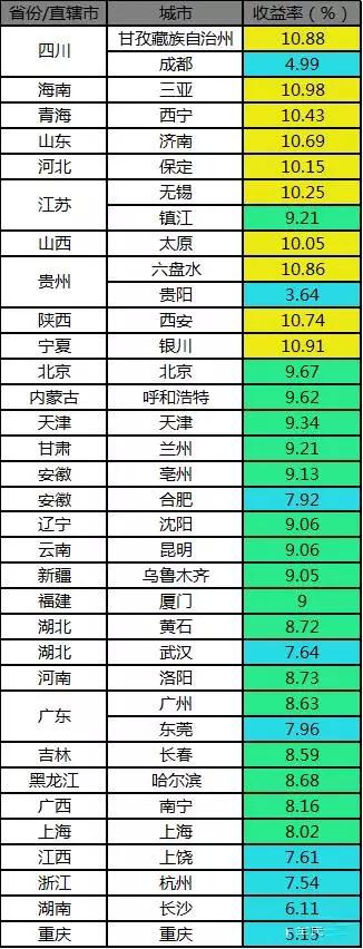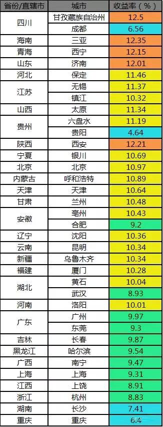 好了,图看完了,到底每个地方具体的收益率是多少呢?别急,真相在这里!