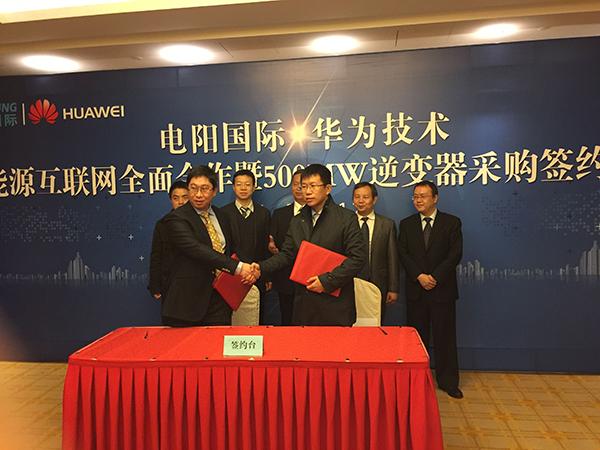 11月27日,电阳国际新能源技术服务有限公司(以下简称电阳国际),与华为技术有限公司(以下简称华为)在北京签署合作协议,双方宣布以500兆瓦光伏逆变器采购为核心,同时在智能光伏解决关键部件及方案、标准、联合创新等领域进行全面合作。这表明,电阳国际开拓的我国能源互联网产业化发展模式,走出了关键一步,进入设备采购阶段。