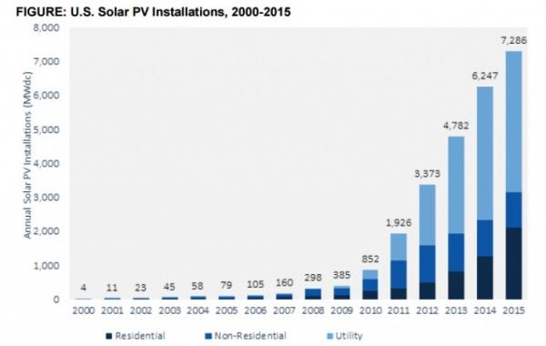 根据GTM Research和太阳能产业协会(SEIA)周一公布的新数据显示,2015年美国太阳能装机量达到7.3GW。