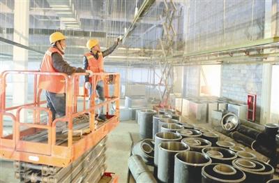 2月24日,在晶澳(邢台)太阳能有限公司1500兆瓦太阳能组件项目动力站,工人在安装水处理设备。该站将提供企业生产所需要的水、电、气等动力。