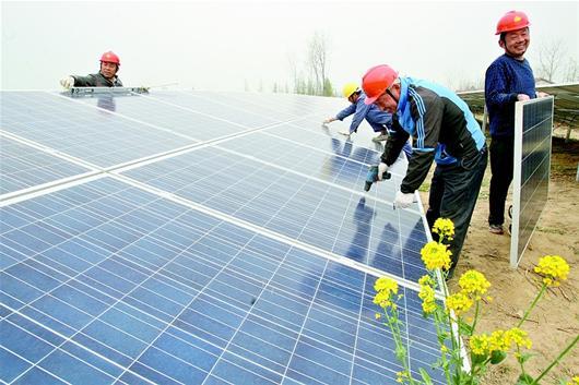 昨日,钟祥市柴湖镇马南村光伏发电扶贫工程正在如火如荼建设。该村引进资金450多万元建设光伏发电装置,发电并网后,惠及全村114个精准扶贫户,每户年均增收3000多元。