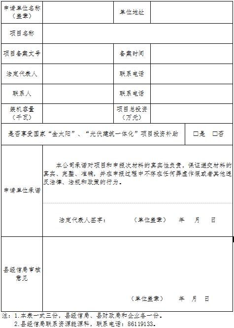 海盐县分布式光伏发电项目补助申请表