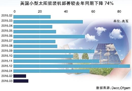 继德国、意大利和西班牙之后,英国也于今年初加入到削减光伏项目补贴的阵列中。去年发展势头迅猛的太阳能产业如遇“冷水浇头”,英国小规模太阳能在过去两个月中装机量骤降。