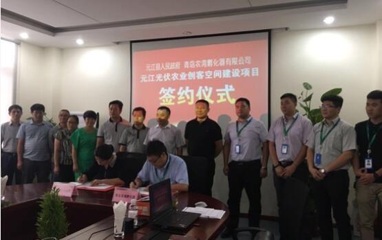 2016年7月25日上午,青岛农湾孵化器有限公司(下称“农湾孵化器”)与云南省玉溪市元江县人民政府就元江光伏农业创客空间建设项目在即墨太阳能产业基地举行签约仪式,标志着农业创客带动“精准扶贫”双创孵化基地正式落户云南。
