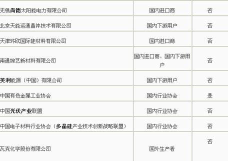 太阳能级多晶硅反倾销和反补贴案产品范围听证会参会单位名单