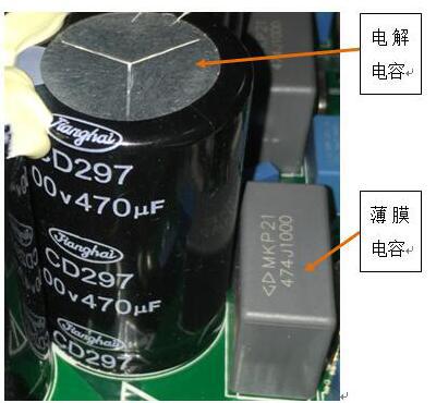 (2)电解电容耐压值一般为500-550V,薄膜电容耐压值一般为1000-1300V,薄膜电容能承受2倍于额定电压的浪涌电压的冲击,能长期承受反向脉冲电压。