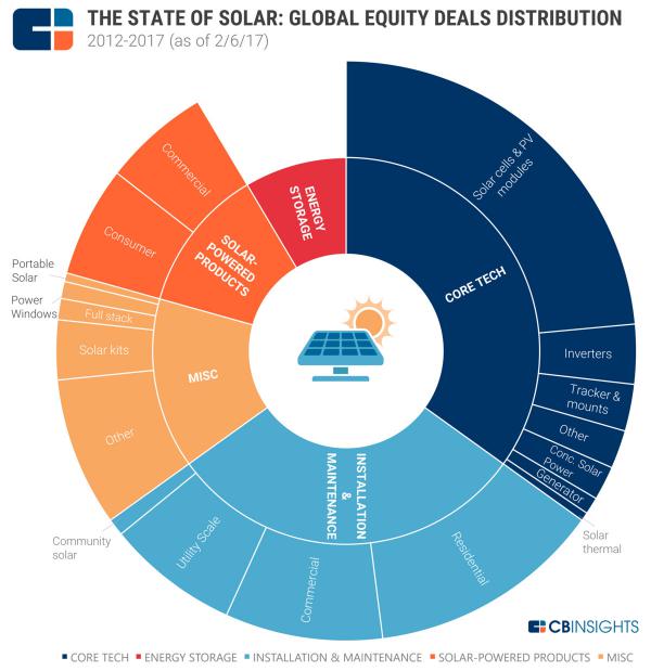 太阳能动力产品:包括消费产品和商用产品两类,在该领域有超过50笔投资交易。