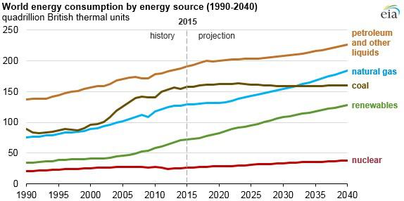 美国能源信息署EIA日前发布今年国际能源展望(International Energy Outlook)报告称,到2040年,全球能源消耗将增长28%,印度和中国将领跑全球能源消耗增长。此外,除煤炭外,对其他能源需求都呈现上涨态势。