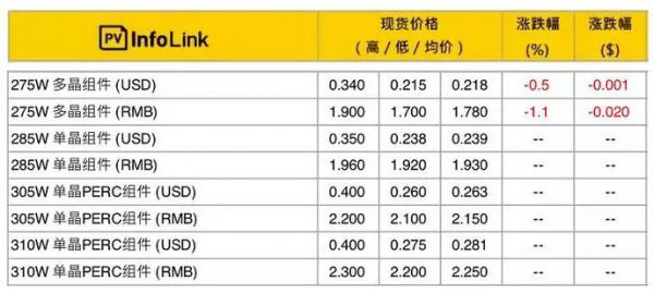 根据PVInfoLink近期更新信息,光伏组件近期价格: