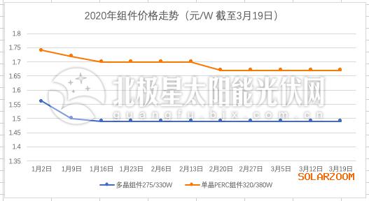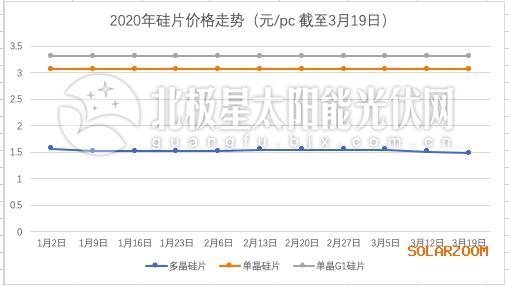 时间进入2020年第一季度末尾,受疫情“黑天鹅”事件影响,本应淡季不淡的第一季度被打回“原型”。从产业链价格走势来看,第一季度整体上价格呈平稳态势,仅电池片、组件环节价格出现小幅波动。