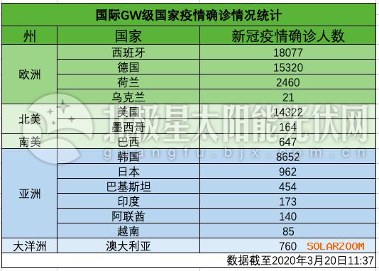 2019年,除中国及中国台湾外,全球GW市场分别在全球14个国家。目前,西班牙、德国、美国、韩国、日本疫情较为严重,项目面临推迟风险。