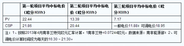 南非当前已经进行了可再生能源电力独立生产采购计划(REIPPPP)的三轮招标,从招标结果来看,光伏发电的项目装机遥遥领先于光热发电。第三轮招标中光伏与光热的装机比例缩小至70:30。