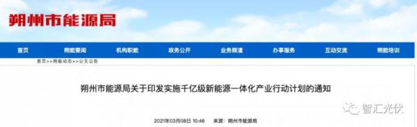 2021年3月8日,山西省朔州市能源局发布《关于印发实施千亿级新能源一体化产业行动计划的通知》(朔能源发〔2021〕20号),提出: