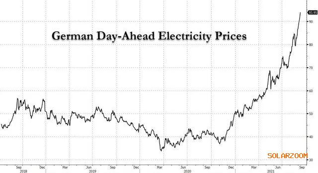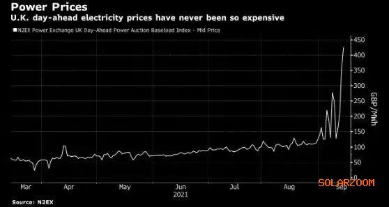 供给的突然减少直接拉高了电价水平,英国和欧洲的电价不断创下历史新高。9月15日晚上7-8点的英国日前电价甚至冲到了2500英镑/MWH的水平(大约为22元人民币/度,这是2020年平价电价的70倍)。预计8月份的平均英国家庭电费将比正常情况至少高出20%。为了应对高价,EPEX甚至将电力价格的上限临时修改为6000英镑/MWH。