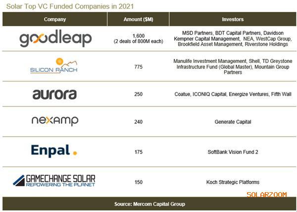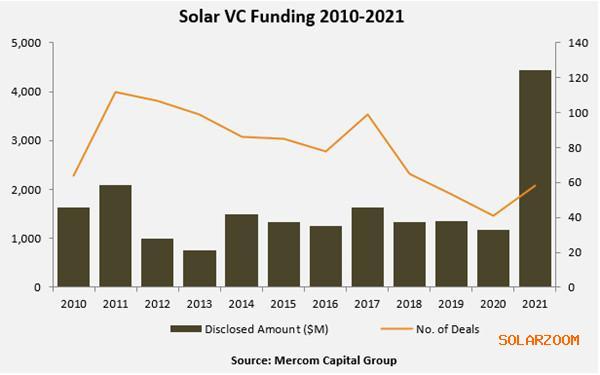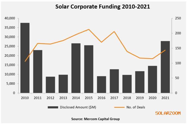 “自2010年以来,2021年是太阳能企业融资和并购最好的一年。在2020年受COVID-19影响之后,融资活动强劲反弹。追逐交易的资金比以往任何时候都多,而且对有吸引力的公司和需求超过了供应”,Mercom资本集团首席执行官Raj Prabhu说。