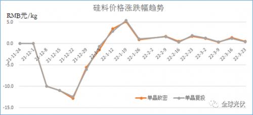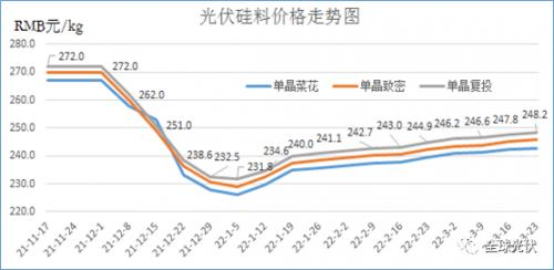 而硅料价格涨幅就是实实在在地变小了,小到每次涨幅不到0.5%。以最后一次涨价为例,复投硅料从247.8元/kg涨到248.2元/kg,你更多地可以理解为是合理波动,如果价格已经达成一致,供销双方甚至懒得重新议价。