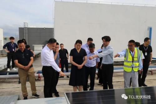 陕西省商南县县委副书记、县长刘华,副县长王佐,县政府党组成员、县域工业集中区管委会主任林贵斌,TCL光伏总经理王国光、副总经理于大鹏、西北区域经理叶刚、TCL智能解决方案业务中心高级经理史大明共同参观华星光电液晶生产线和7.76MW光伏基地。