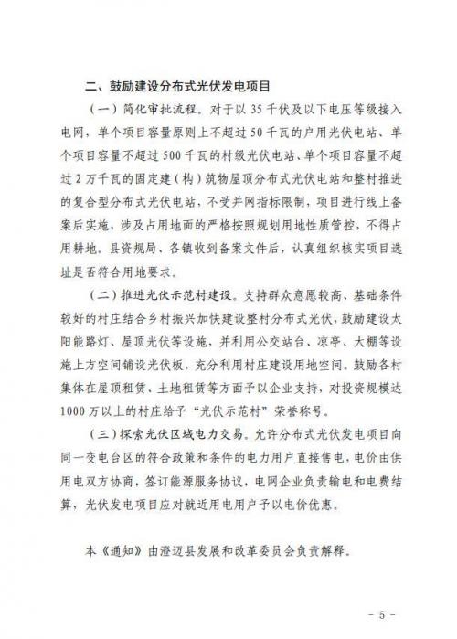 海南澄迈: 允许分布式光伏发电项目向电力用户直接售电