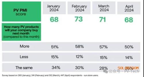 然而,总体而言,市场仍在增长,正如sun.store所指出的那样:“从整体看,4月份的光伏采购经理人指数(PMI)读数在任何其他行业中都被认为是强劲的,因为一半的受访者计划在5月份增加采购量,而不是4月份。