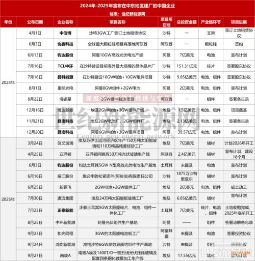 2024-2025年宣布在中东地区建厂的中国光伏企业,如下: