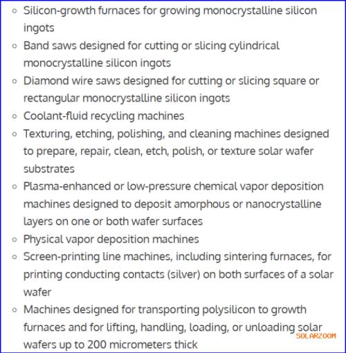 在后端的组件生产环节,丝网印刷产线、烧结炉以及用于搬运超薄硅片的专用机器也获得了豁免。