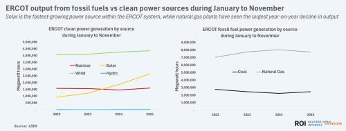 到2025年,ERCOT系统从清洁能源中产生的电力数量创下历史新高,并将化石发电数量降至有记录以来的最低水平