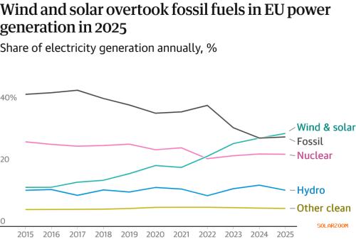 能源与清洁空气研究中心的分析师佩特拉斯*卡蒂纳斯表示,Energy太阳能和风能正“成为欧洲电力系统的支柱”,他并未参与该报告。