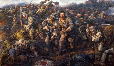 3月18日清晨,日军发起第一次冲锋,刚推进30米便遭到4连的密集火力阻击,仓皇后退。随后日军又组织多次进攻,但都被打退。恼羞成怒的日军把山炮、迫击炮、掷弹筒都集中起来,向4连阵地猛烈攻击。数不清的敌人借着夜幕,又一次冲到4连阵地前沿。连长白思才带头跃出战壕,大喊一声:“杀啊!”在一片气壮山河的喊杀声中,官兵们拼尽最后一口气力,82名勇士全部壮烈牺牲。
