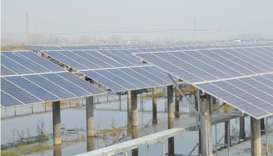 中海阳投资建设的江苏高邮6MW渔光互补光伏电站项目。