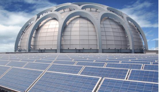 近年来,国家大力发展屋顶光伏,一座座光伏电站纷纷落户社区、城镇、工业园区,甚至是居民家中的屋顶,不仅让光伏电站在屋顶安了家,而且还成为一道独特的风景。伴随能源互联网的兴起,光伏电站落户工业园区厂房、居民屋顶必将蔚然成风。图为中海阳承建的山东省博物馆新馆0.45MWpBIPV项目,该项目是当时国内单体规模最大的太阳能光电建筑一体化项目。