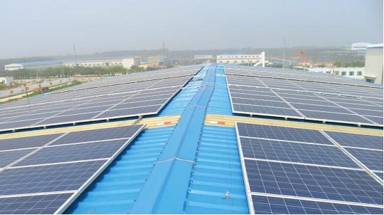 图为中海阳承建的山东省冠县工业园区10MWp太阳能光伏电站项目。