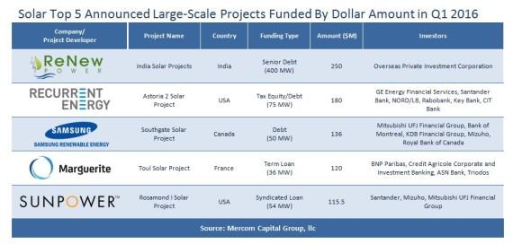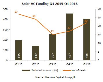 Mercom资本集团首席执行官Raj Prabhu表示,“在当前的艰难环境下,许多太阳能公共企业都很难增加投资成本。例如,2015年债务市场和公共市场都占据主要融资份额的Yieldcos在本季度表现非常低调。另一方面,风投表现出色,证券交易活动回升,住宅/商业类太阳能行业本季度募集资本超过10亿美元。”