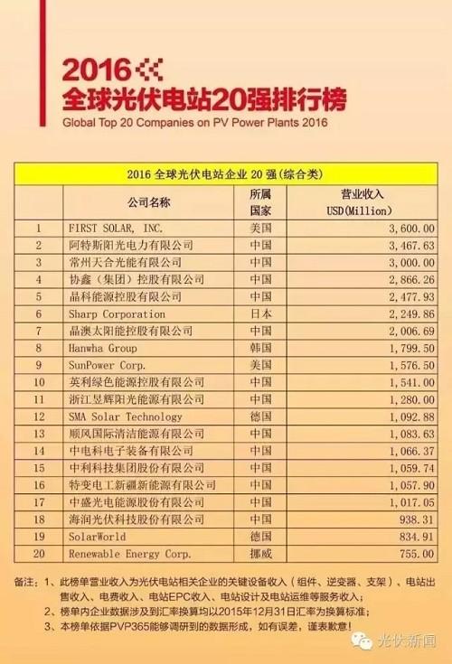 通过现场公布的中榜名单显示,得益于国内光伏发电应用的迅猛发展,中国光伏巨头占了七大类的前二十强中的半壁江山。对于含金量颇高的“2016全球光伏电站企业20强排行榜(综合类)”中,中国企业占据了13个席位,其它7个分别被美国、日本、韩国及欧盟瓜分。