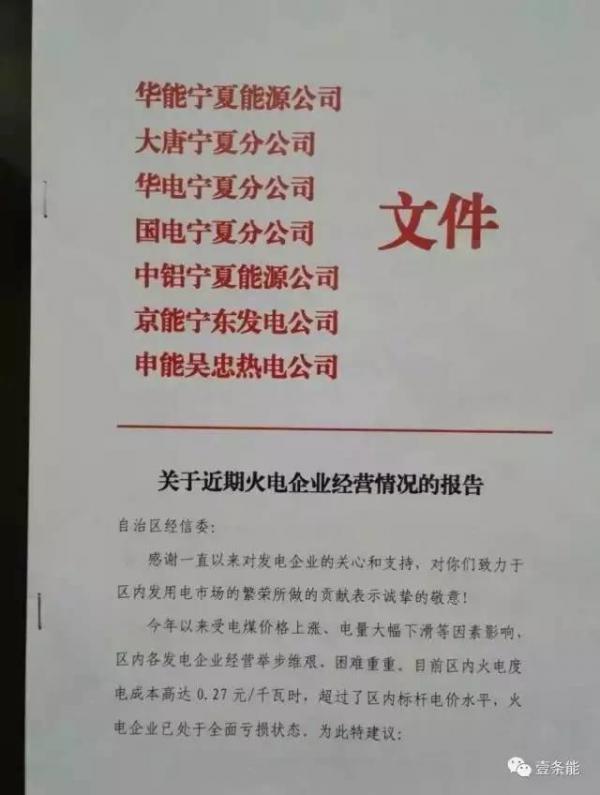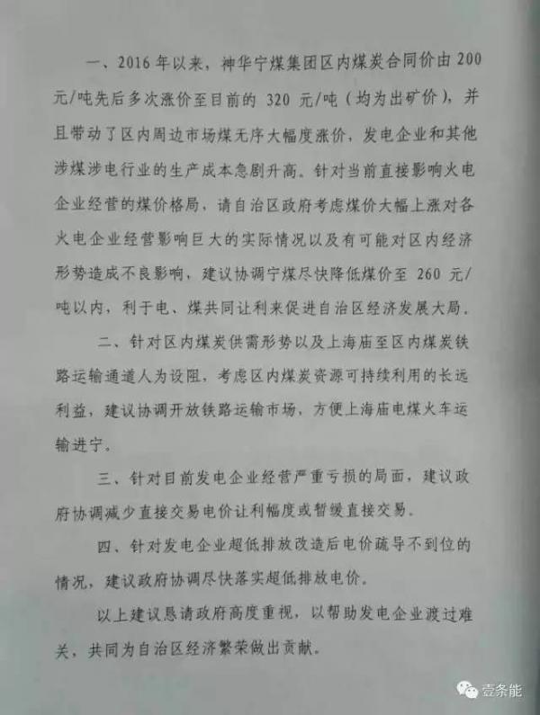3月17日,宁夏7家煤电企业联名上书宁夏经信委。