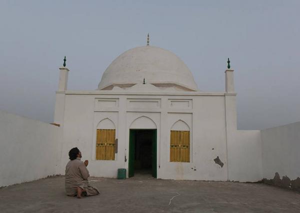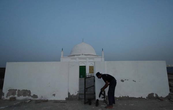 面对当地的众多不便和困难,负责人徐鸿昌称:前50兆瓦我们预计的完工时间2015年的9月份,但是实际完成时间是2015年8月14号,比计划提前了一个月。我们做出了超乎他们想象的努力。图为一名士兵刚做完祈祷,在清真寺外穿鞋。