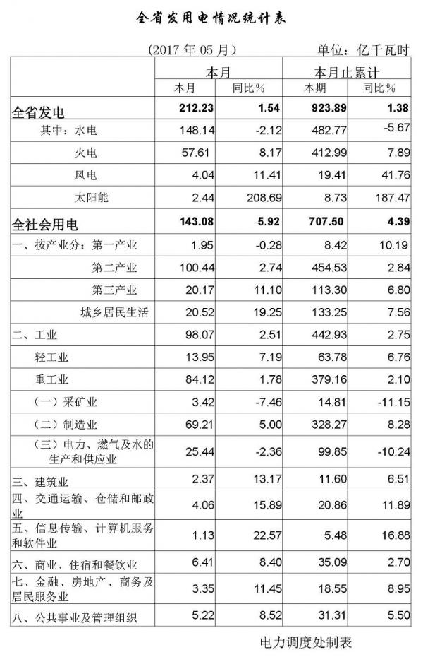 5月份,全省全社会用电143.08亿千瓦时,增长5.92%,其中工业用电98.07亿千瓦时,增长2.51%。