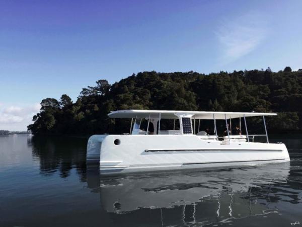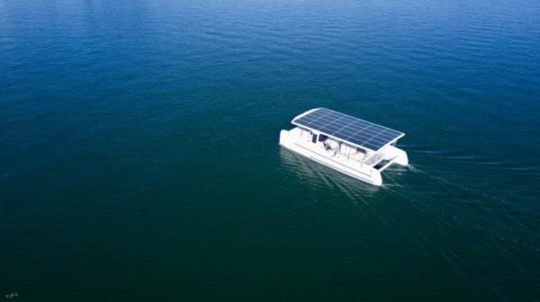据外媒报道,荷兰Soel Yachts公司本周在新西兰推出了一款称为SoelCat 12的电动双体船,展示了一种更清洁的水上交通工具。零排放的SoelCat 12能够运载16名乘客,不需要燃料。而是依靠装在船顶的8.6KWp太阳能电池阵列提供动力。