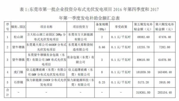 日前,广东东莞发布了关于拨付我市第一、二、三、四批分布式光伏发电项目2016年四季度和2017年一季度专项补助资金的公示。原文如下: