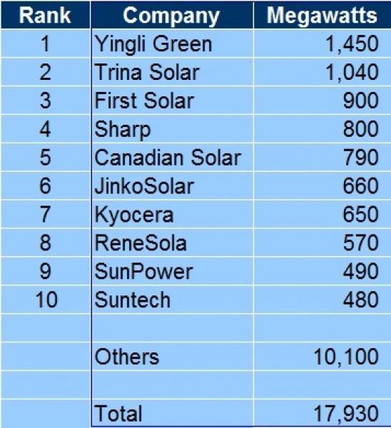 根据IHS,在2013年上半年,得益于中国国内需求,该公司出货1,450MW,IHS表示,预计今年下半年将增长。英利绿色能源的出货量较2012年同期1,110MW提高29.9%。