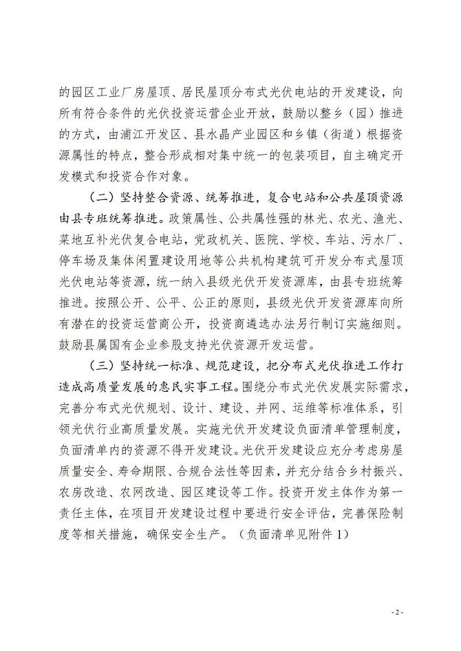 还删去了“建议选择由浦江开发区下属国有公司投资或合资企业优先承建,其他区域鼓励选择浙江省推荐参与整县推进光伏投资建设企业以及企业名单”,改为“自主确定开发模式和投资合作对象”。