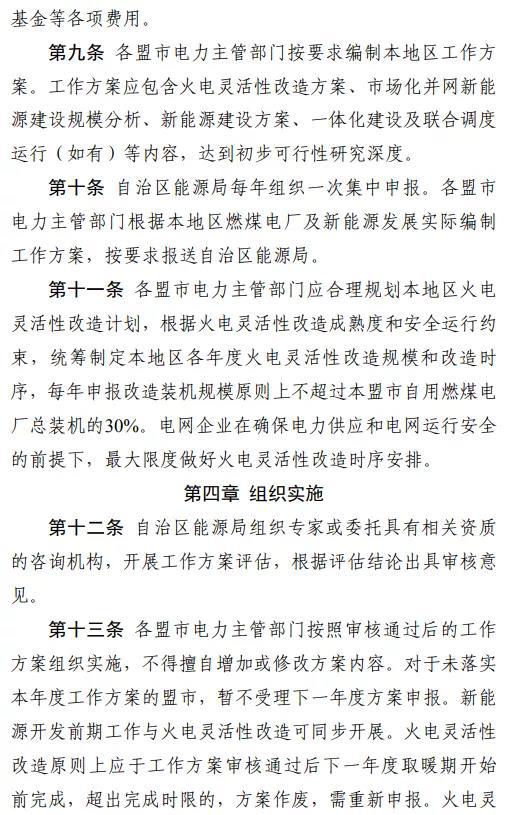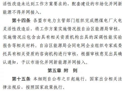 《通知》明确,该细则适用于内蒙古自治区行政区域内自用燃煤电厂火电灵活性改造及市场化并网新能源建设工作方案(简称“工作方案”)的申报和管理。
