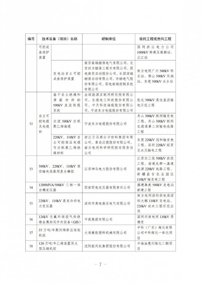 国家能源局综合司关于2021年度能源领域首台(套)重大技术装备项目的公示